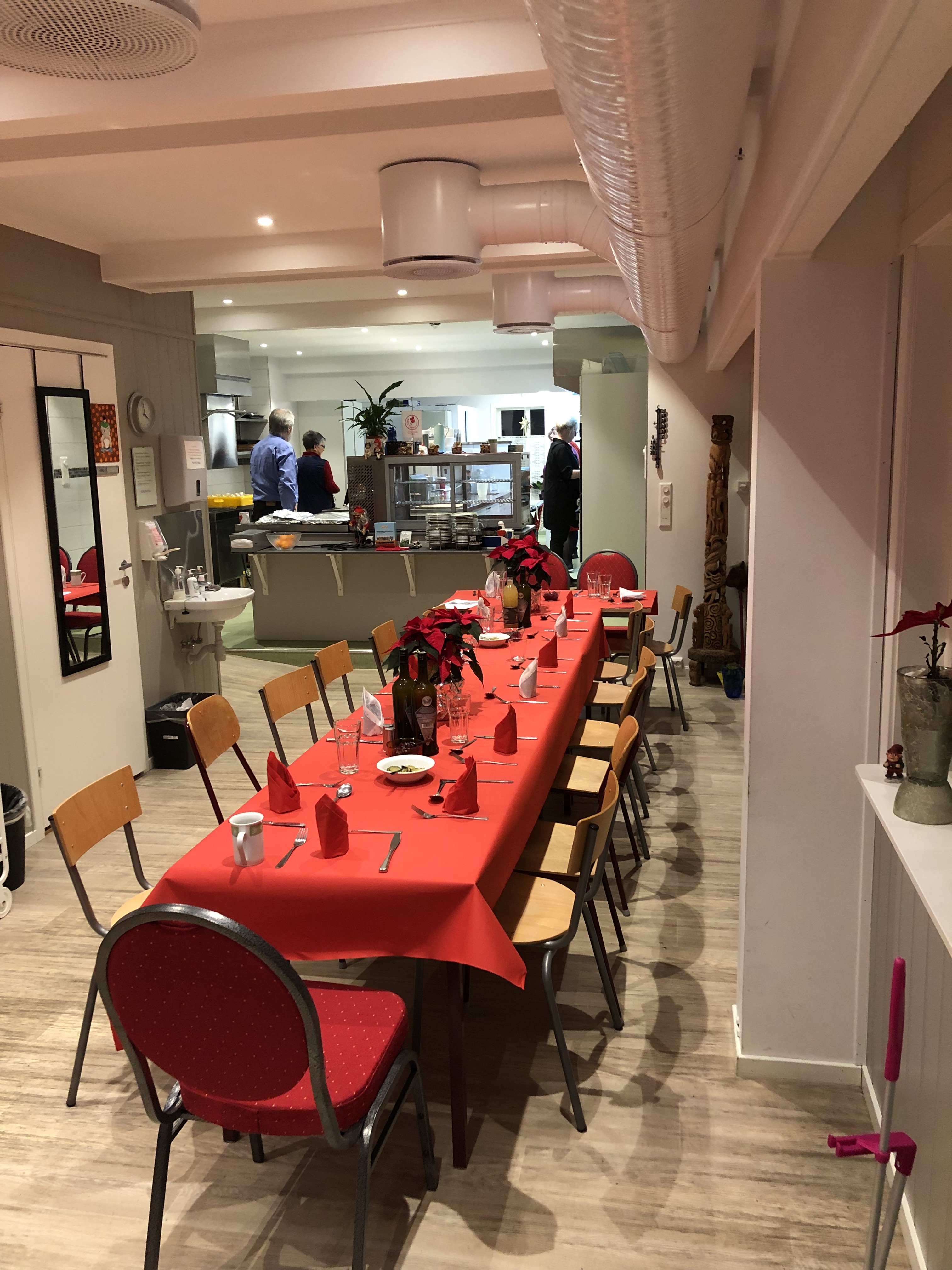 Det var en svært triveleg og hyggeleg kveld, der mange frivillige deltok for å gjøre kvelden til ein uforeglemmelig kveld for våre brukere. Maten var ribbe, medisterkaker, julepølser med alt tenkelig tilbehør. Inger Lise "kokkelerte" som kun ho kan. Det var utsøkt og god mat.