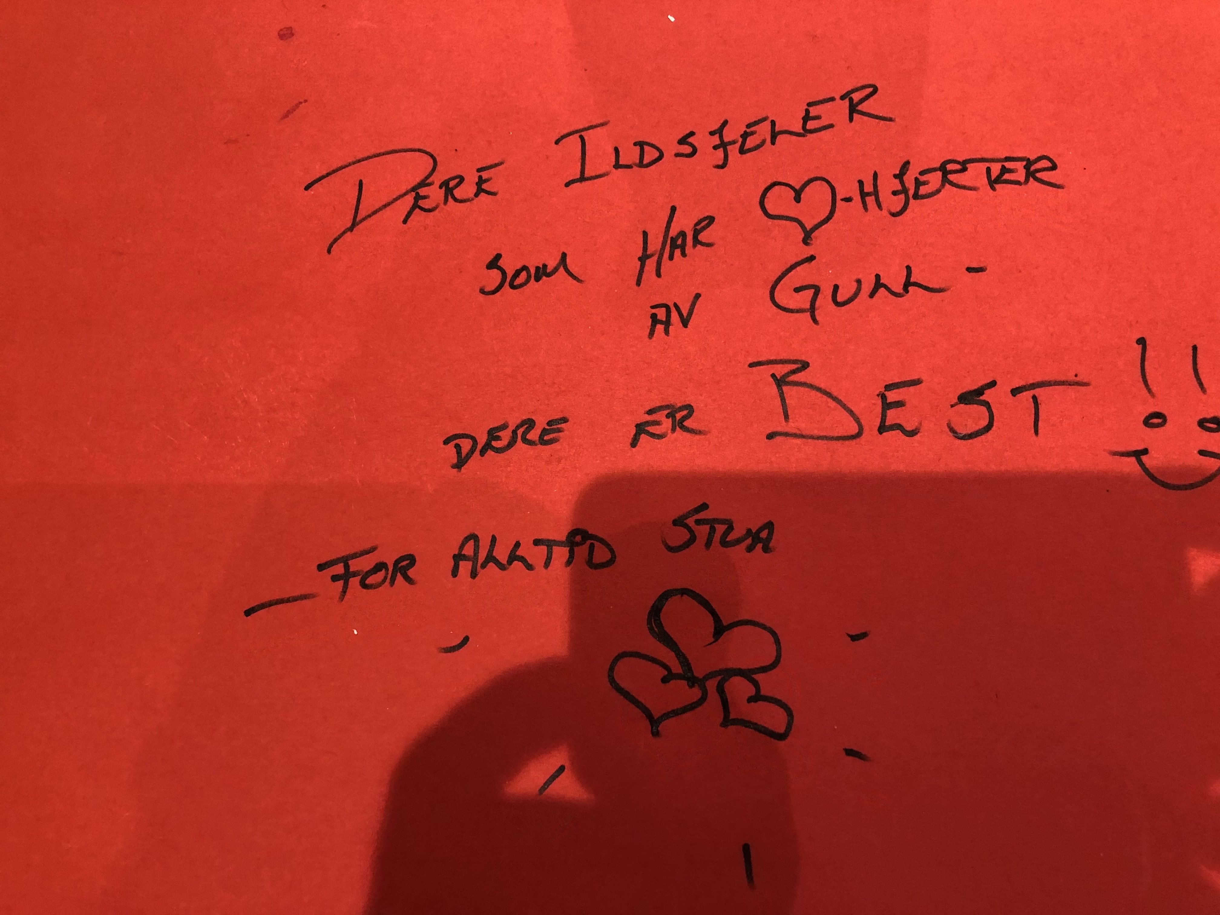 Noen av vore brukere skrev en liten hilsen til de frivillige på duken.